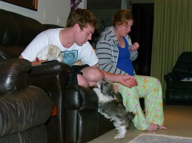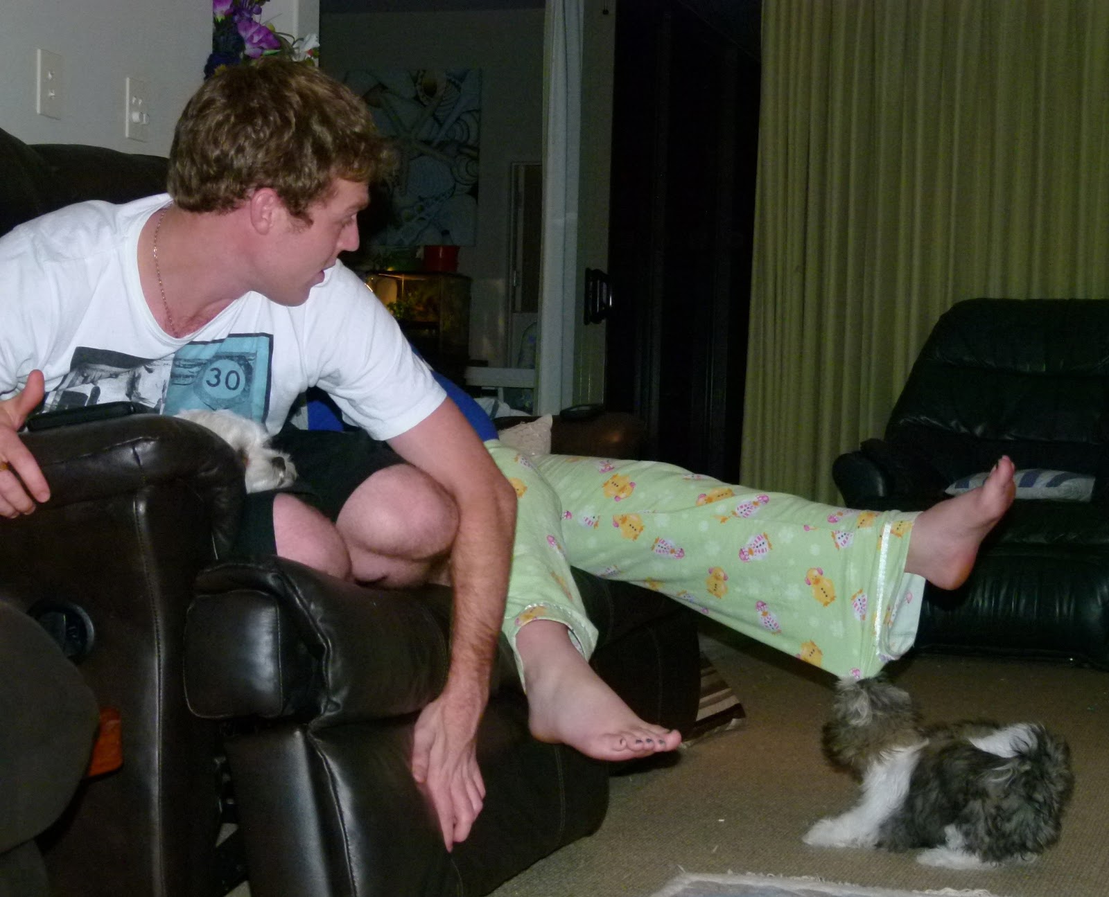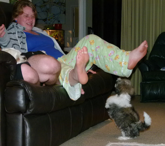 ABOVE: if he couldn't get the feet, pj bottoms would do! lol... he ripped them too. Little bugger... we are going to miss his cheeky antics, and the cuddles and sloppy kisses.