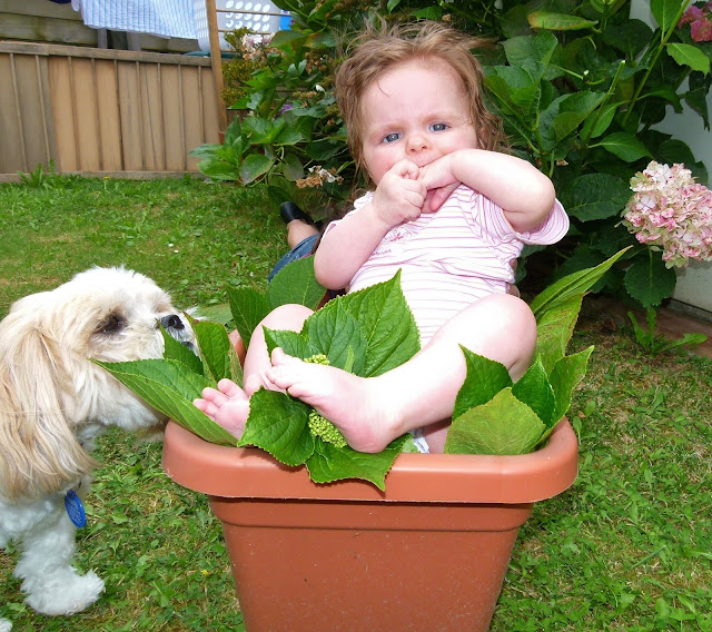 ABOVE: OOooo lookee, flowers! Ain't me toes cute!