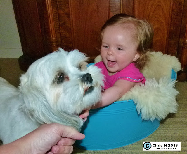 ABOVE: Lacy decided to clean Teddy's eyes, he often has mucky eyes. She did some dry retching! Lightweight Chick. lol